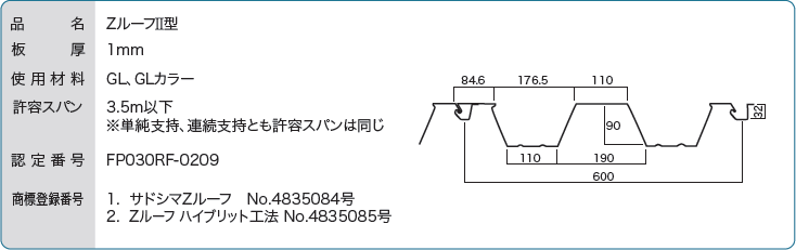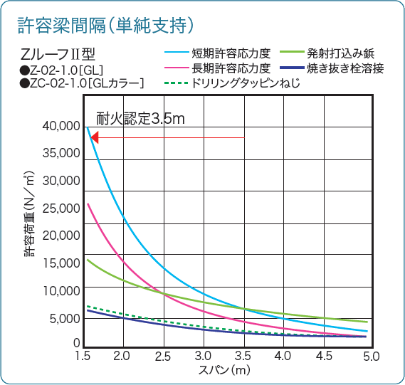 - ZルーフⅡ型単体で屋根30分耐火構造、鉄骨造の非歩行屋根に最適。